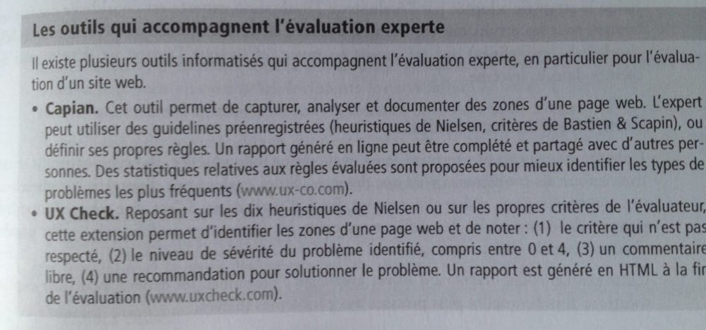Capian in the French Méthodes de design UX (UX Design Methods) book, by Carine Lallemand and Guillaume Gronier